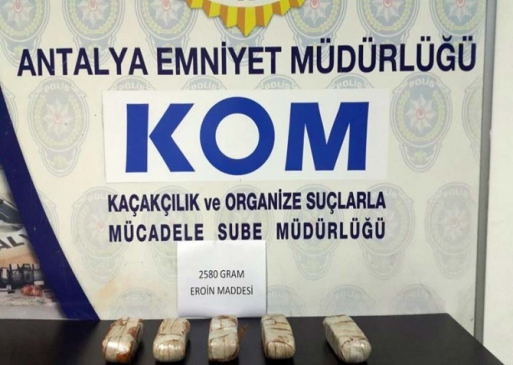 Yapılan aramada, 5 paket halinde 2 kilo 580 gram eroin ele geçirildi. Olayla ilgili olarak A.G. ve H.B. isimli şüpheliler gözaltına alındı. Şahısların, 'uyuşturucu madde ticareti yapmak ve sağlamak' suçundan adli makamlara sevk edilerek tutuklandıkları bildirildi.