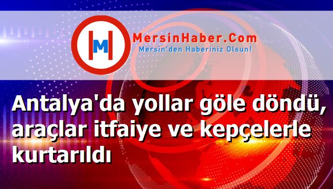 ANTALYA - Antalya'da öğleden sonra etkili olan 'aşır yağış' nedeniyle yollar göle döndü, araçlar ve sürücüler yollarda mahsur kaldı. Sürücülerin yardımına itfaiye koşarken, araçlar kepçe yardımıyla sudan çıkarıldı.