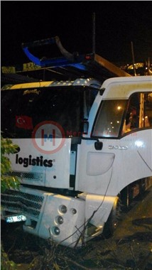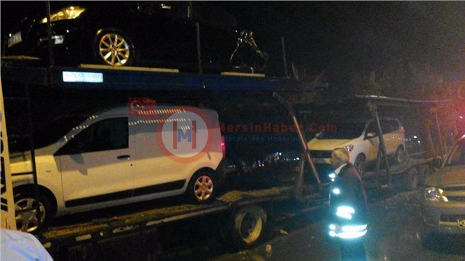 Aracın alev alması nedeniyle, araç şoförü Mustafa Eker hareket halindeki araçtan atladı. Dorse kısmında üç adet hasarlı araç bulunan tır yol dışına çıkarak durabildi.