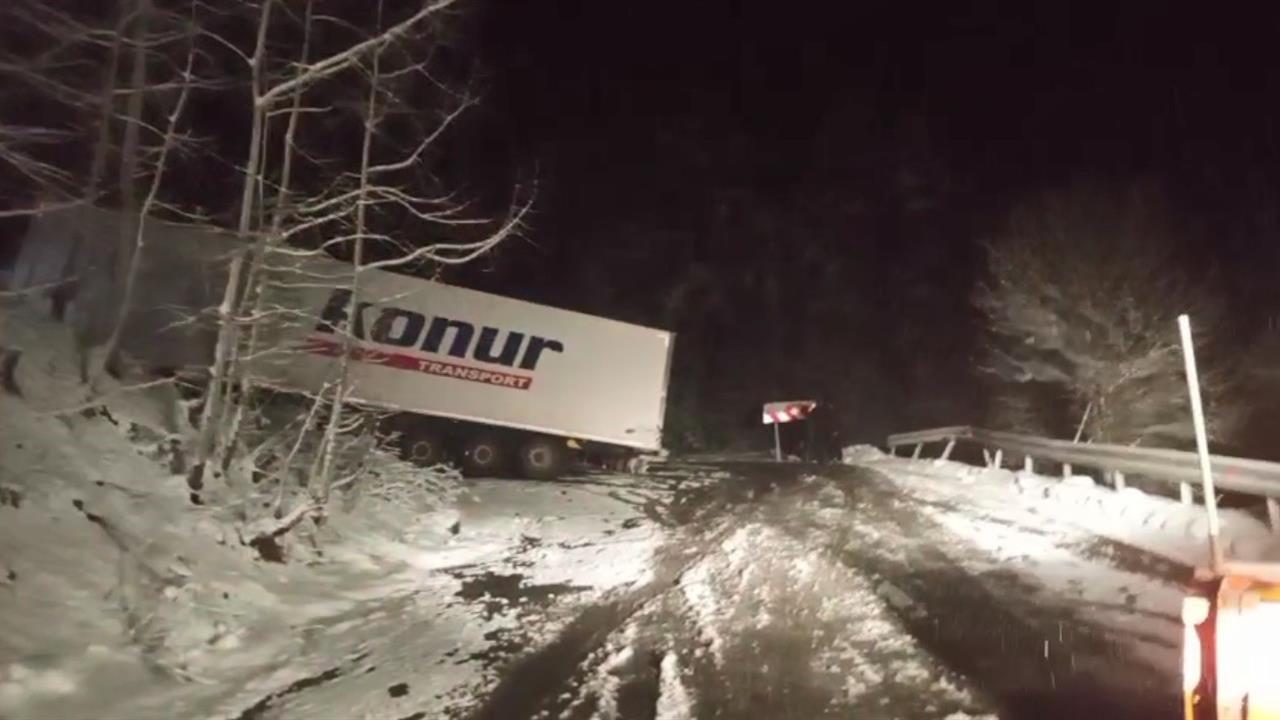 Olay, sabah saatlerinde Sahara Geçidi'nin zirve noktasında gerçekleşti. Edinilen bilgilere göre, kaygan zemin nedeniyle tır kontrolden çıkarak yolu kapattı. Bu durum, her iki yönde trafiğin durmasına neden oldu. Mahsur kalan sürücülerden Adem Kaya, o anları cep telefonuyla kaydederek durumu anlattı.