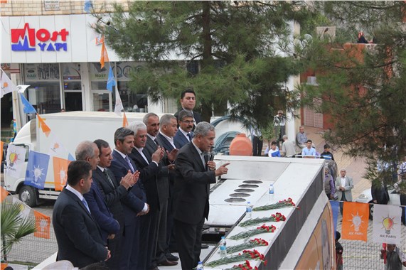 AK Parti Seçim Koordinasyon Merkezinin açılışına katılmak üzere Adıyaman Kâhta’ya gelen eski Başbakan Yardımcısı Bülent Arınç, beraberinde Grup Başkanvekili Ahmet Aydın ile birlikte 25 gün önce Şırnak-Beytüşşebap’ta şehit olan Uzman Çavuş M.Ali Bozkurt’un Menderes Mahallesi'ndeki baba ocağını ziyaret ederek taziyede bulundu. Buradan, Özel Harekât timleri tarafından yoğun güvenlik önlemlerinin alındığı Mustafa Kemal Caddesi üzerindeki Bardakçı Oteli bitişiğindeki Seçim Koordinasyon Merkezinin açılışına geçen Arınç, seçim otobüsüne çıkarak konuşma yaptı.