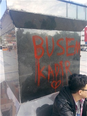 KIRIKKALE - Kırıkkale’nin Cumhuriyet Meydanı’nda bulunan Atatürk büstünün mermerine aşk yazısı yazıldı.