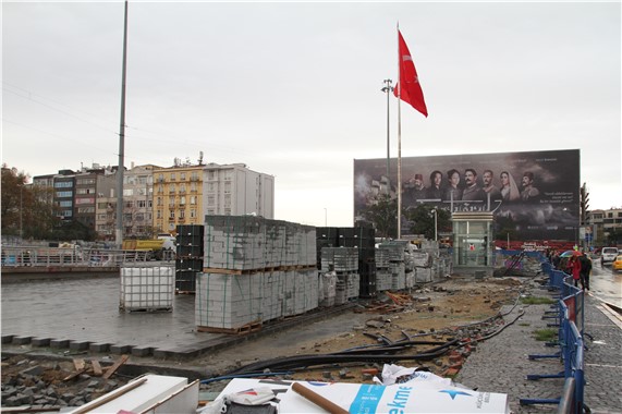 Uzun bir süredir yıkım, onarım gibi tartışmalara konu olan Atatürk Kültür Merkezi, adeta reklam panolarını andırıyor. AKM’nin ön yüzüne yakında vizyona girecek bir filmin dev afişi asıldı. Binanın yanında bulunan ‘Kültür ve Turizm Bakanlığı İstanbul Atatürk Kültür Merkezi güçlendirme ve tamirat inşaatı’ yazılı tabela dikkat çekti. Ancak binada herhangi bir çalışmanın olmadığı görüldü.