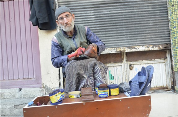 Çarşı Mahallesi Soraçan Caddesi üzerinde ayakkabı boyacılık yapan ve günlük kazancı ortalama 15 lira olan Akburak’ın tek geçim kaynağı boya sandığı. Mahalle sakinlerinin yanı sıra alış veriş yapan vatandaşların ayakkabısını boyayan yaşlı adam geçimini sağlamak için zaman zaman zorlandığını dile getirdi.