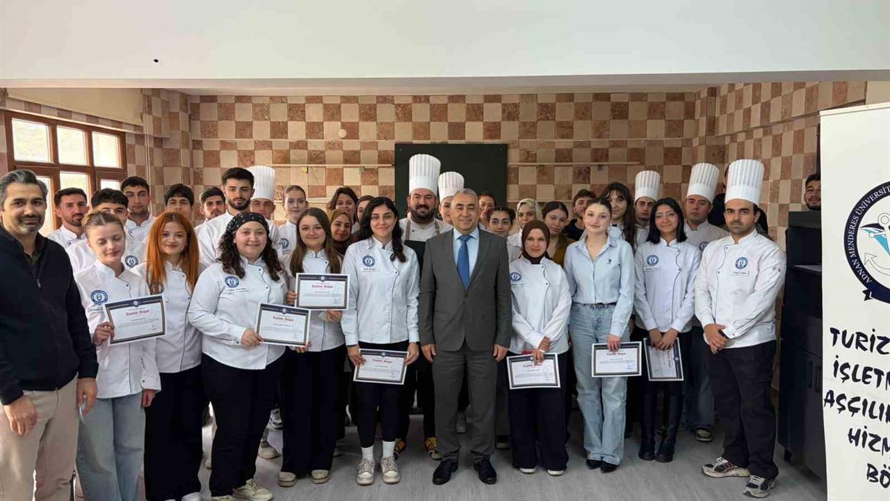 Aydın Adnan Menderes Üniversitesi (ADÜ), akademik başarılarına her geçen gün bir yenisini eklemeye devam ediyor. Bu kapsamda, Kuşadası Davutlar Meslek Yüksekokulu bünyesinde yer alan Aşçılık Programı, akreditasyon sürecini başarıyla tamamlayarak önemli bir başarı elde etti. Bunun ardından, ADÜ Rektörü Prof. Dr. Bülent Kent’in katılımıyla bir teşekkür belge takdim töreni düzenlendi. Törende, sürece katkıda bulunan akademik ve idari personel ile öğrencilere teşekkür belgeleri sunuldu.