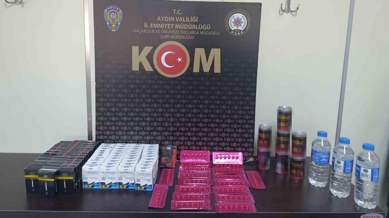 Aydın İl Emniyet Müdürlüğü, kaçakçılık faaliyetleriyle mücadele çalışmalarını sürdürüyor. Edinilen bilgilere göre, Aydın İl Emniyet Müdürlüğü Kaçakçılık ve Organize Suçlarla Mücadele Şube Müdürlüğü ekipleri, Köprülü Veysi Paşa Mahallesi'nde bulunan bir iş yerinde arama yaptı. Yapılan incelemede, cinsel içerikli olduğu değerlendirilen 114 adet hap, 7 kutu içecek, 280 adet jel, 720 adet tütün doldurulmuş makaron ve 1,5 litre ev yapımı alkollü içki ele geçirildi. Olayla ilgili olarak G.Ö. isimli şüpheli hakkında Kaçakçılıkla Mücadele Kanunu’na muhalefet suçundan adli işlem başlatıldı. Ekipler, halk sağlığını tehdit eden bu tür kaçakçılık faaliyetlerine karşı kararlılıkla mücadele etmeye devam edecek.