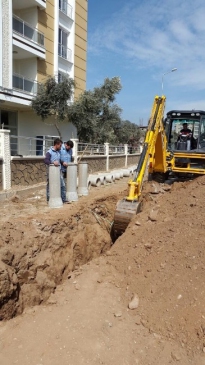 Aydın Büyükşehir Belediyesi Su ve Kanalizasyon İdaresi (ASKİ) Genel Müdürlüğü, Köşk ilçesinde alt yapı çalışmalarını genişletmeye devam ediyor. Yeni yerleşim alanlarında, özellikle 150 konutluk projede, kanalizasyon hattı çalışmaları hızla ilerliyor. Ekipler, Çarşı Mahallesi Zeytin Kent Caddesi'nde 500 metrelik kanalizasyon hattı inşa ediyor. Kullanılan 200 milimetrelik beton borular, olumsuz hava koşullarına rağmen işlerin aksamadan devam etmesini sağlıyor. ASKİ, tüm ilçe ve mahallelerde yeni konutların alt yapılarını hızlı bir şekilde tamamlayarak bölgenin gelişimine katkı sağlamayı hedefliyor.