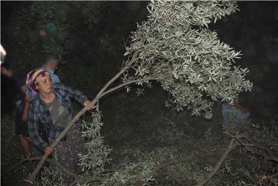 Vatandaşların iddiasına göre, jeotermal firması elektrik santrali için asırlık zeytinleri iş makinalarıyla köklerinden söküyor. Mahalle sakinleri ağaç katliamını önlemek için ellerinde fenerlerle zeytin tarlalarına koştu. Köylülerin geldiği haberini alan firma çalışanlarının iş makinalarıyla söktükleri ağaçları kamyonlara yükleyerek zeytin tarlasından ayrıldıkları öğrenildi.