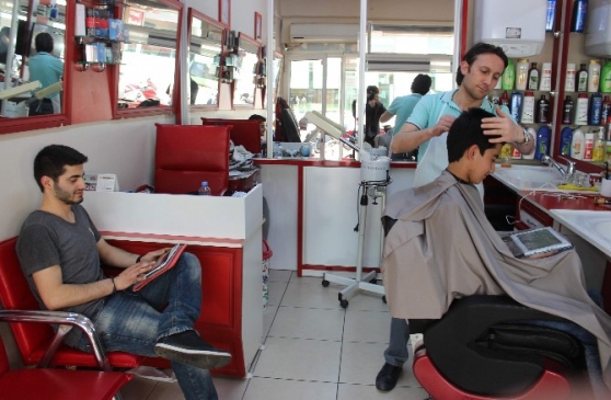 Berber Bülent Kovacı, “Önceleri berberlik sadece makasla yapılırdı. Şimdi tarak ve makas kadar tabletler de zorunlu malzeme haline gelmeye başladı” dedi.