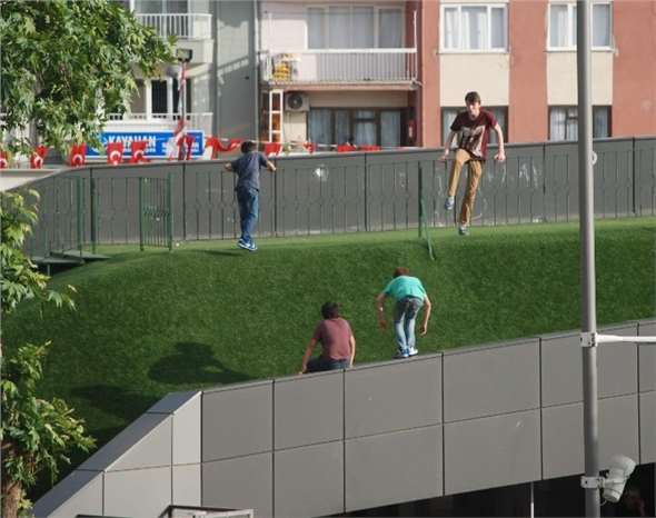 Aydın'ın Efeler ilçesinde, Atatürk Kent Meydanı'ndaki Havuz ve Meydan Kafe üzerindeki yasaklı kısımda oyun oynayan çocuklar, farkında olmadan büyük bir tehlike ile karşı karşıya. Artan yapılaşma nedeniyle şehir merkezlerinde çocukların oyun oynayabilecekleri alanların azalması, onları bu tehlikeli oyunlara yönlendiriyor.