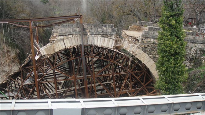 AYDIN - Aydın’ın Karacasu ilçesindeki, restorasyon çalışmasında zarar gören 589 yıllık Dandalaz Köprüsü tamamen yıkılacak. Elde edilecek malzemeleri de kullanarak köprüyü yeniden inşa edeceklerini belirten Karayolları 2. Bölge Müdürü Abdülkadir Uraloğlu, “Mevcut yapıyı komple yıkacağız. Kullanabileceğimiz bütün taşları ayıracağız. Yeniden köprüyü, baştan yapılıyormuş gibi yapacağız.” dedi.