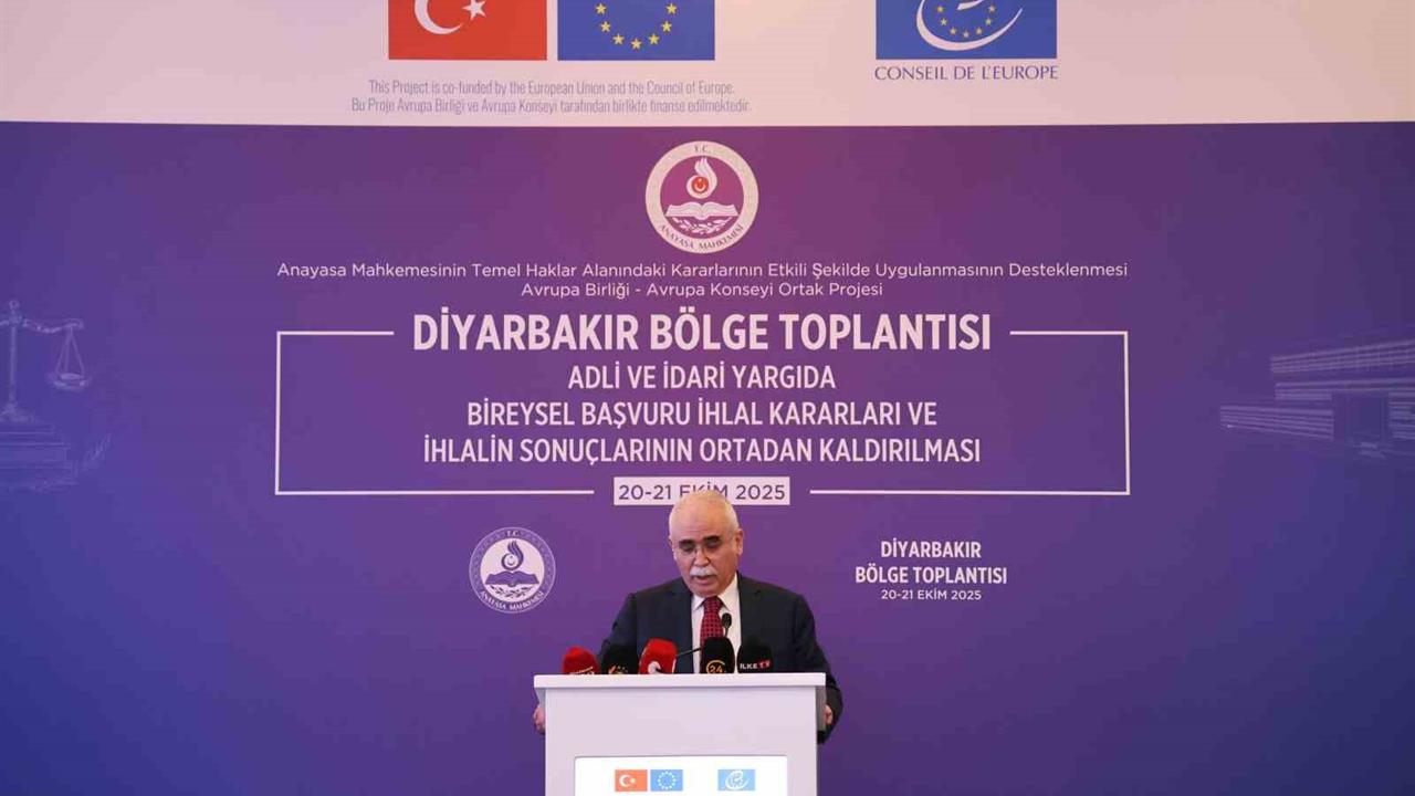 Anayasa Mahkemesi ile Avrupa Birliği-Avrupa Konseyi iş birliğinde yürütülen "Anayasa Mahkemesinin Temel Haklar Alanındaki Kararlarının Etkili Şekilde Uygulanmasının Desteklenmesi Projesi" kapsamında "Adli ve İdari Yargıda Bireysel Başvuru İhlal Kararları ve İhlalin Sonuçlarının Ortadan Kaldırılması" konulu bölge toplantılarının 7’ncisi Diyarbakır’da başladı. Bir otelde düzenlenen toplantıya Anayasa Mahkemesi Başkanı Kadir Özkaya, Yargıtay Başkanı Ömer Kerkez, Yargıtay Cumhuriyet Başsavcısı Muhsin Şentürk, Avrupa Konseyi İnsan Hakları, Adalet ve Hukuki İşbirliği Standartlarının Uygulanması Dairesi Başkanı Lilja Grétarsdttır, Avrupa Konseyi Ankara Program Ofisi Başkanı William Massolın, Diyarbakır Cumhuriyet Başsavcısı Mustafa Çelenk, Diyarbakır Adli Yargı Adalet Komisyonu Başkanı Erhan Çavuşoğlu, Diyarbakır Bölge Adliye Mahkemesi Başkanı Kenan Şenlik, Diyarbakır Bölge Adliye Mahkemesi Cumhuriyet Başsavcısı Ali İrfan yılmaz ve davetliler katıldı.