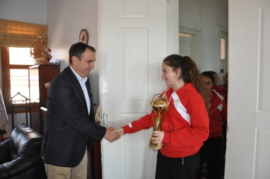 Ayvalık'ta Belediye Başkanı Gençer, Kız Voleybol Takımı'nı kabul etti.