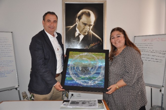 Ayvalık'ta sanat çalışmaları gerçekleştiren İldem Arabacıoğlu, düğün hediyesi olarak “Zeytin” adlı resmini Belediye Başkanı Rahmi Gençer’e takdim etti.