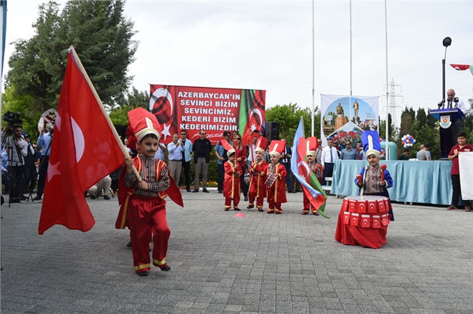 Başkan Kocamaz, “Azerbaycan ismi içerisinde gerçekten Türkiye için bir can, bir kardeş mesafesinde. Çocukluğumuzdan bu yana dört gözle beklediğimiz, bir gün mutlaka kavuşacağımız Azerbaycan ve diğer Türk Dünyası ile hülyalarımız Allah’a binlerce şükürler olsun ki, 1990’dan sonra hayat buldu ve birbirimize kavuştuk, aradaki duvarlar yıkıldı. Birbirimizin varlığını kucaklaşarak hissettik. Gerçekten Aziz Atatürk’ün 1930’lu yıllarda belirttiği gibi bu günleri dört gözle bekliyorduk ve rahmetli Başbuğumuzda bu günlerin mutlaka geleceğini ve Türk dünyasının kucaklaşacağını belirtiyordu ve çok şükür rahmetli Başbuğ öbür dünyaya gözü açık gitmedi. Bu duvarların yıkılmasını ömrü boyunca verdiği mücadelenin artık sübuta erdiğini bizzat gördü. Biz bugün geldiğimiz günlerde bu kentte yerel yönetici olarak, görev aldığımız andan itibaren hülyalarımızı gerçeğe dönüştürmek düşüncesiyle günlük belediyecilik hizmetlerinin dışında kentin ufkunu bir yerlere aşmak istedik. Kentin ufkunu Türk Dünyasına açmak istedik. İnsanlarımızın bir araya gelmesini, kaynaşmasını, birbiriyle bütünleşmesini hep düşündük. Bugün geldiğimiz noktada Allah’a binlerce şükürler ediyoruz, Azerbaycanlı kardeşlerimizin, kandaşlarımız, artık hiçbir yerden izin almadan, direk olarak gelip bizimle buluşabiliyor, bizler de aynı şekilde oralara gidip kardeşlerimizle kucaklaşabiliyoruz.