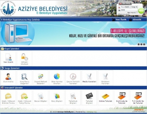 Vatandaşlar, Aziziye Belediyesi’nin www.erzurumaziziye.bel.tr adresine girerek e-belediye bölümüne ulaşabiliyor. Burada, TC kimlik numaraları veya sicil numaraları ile isterlerse üye olarak, isterlerse de üye olmadan işlem gerçekleştirebiliyorlar. E-belediyecilik uygulamaları kapsamında emlak, ÇTV ve kira bedellerinin ödenmesi yanında, interaktif belediyecilik uygulamalarının geliştirilmesi için de çalışmalar devam ediyor.