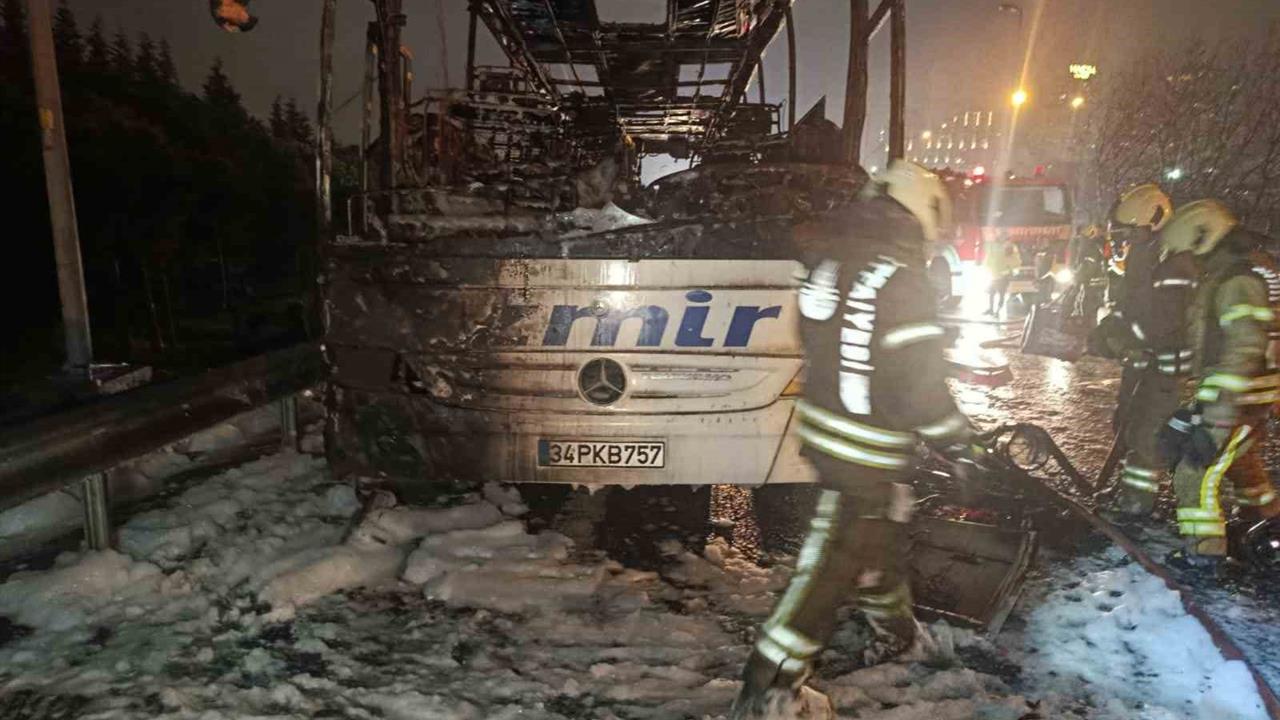 Bağcılar TEM otoyolu üzerinde bir yolcu otobüsünde yangın meydana geldi. Olayda yaralanan ya da ölen olmadı. Otobüsün alevler içinde kalma anları ise güvenlik kameralarına yansıdı.