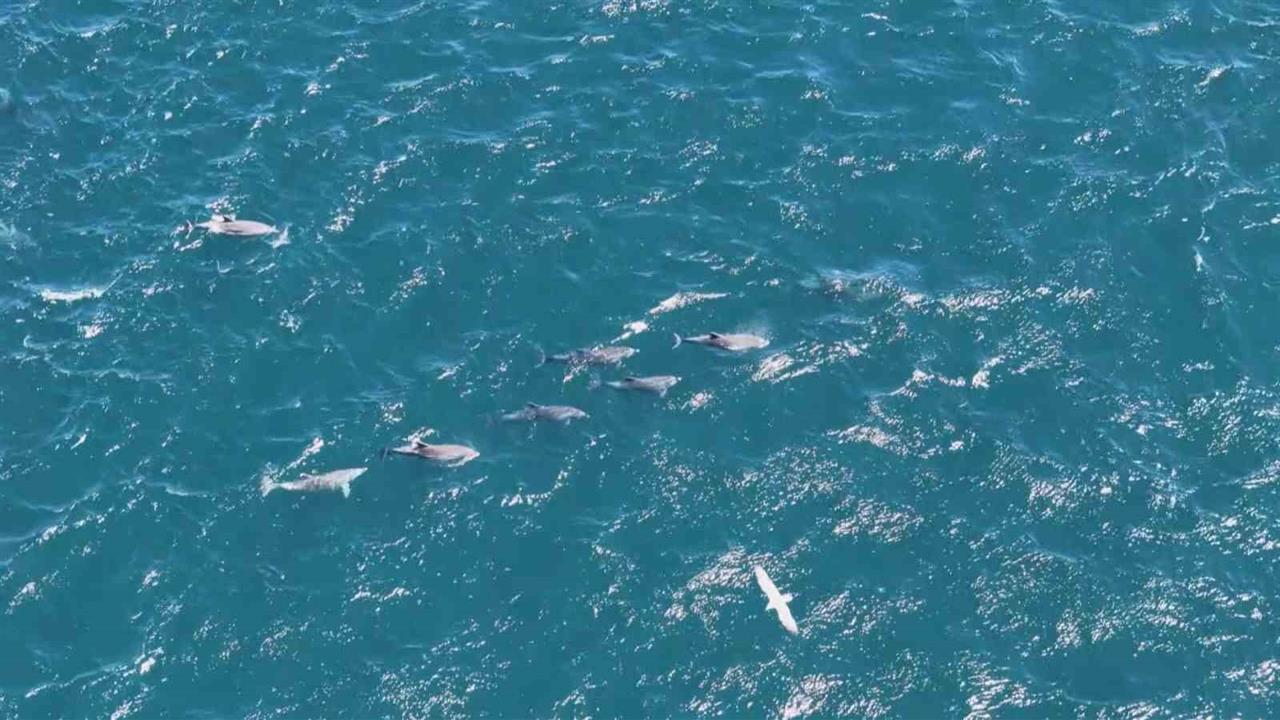 İstanbul Boğazı’nda baharın gelişiyle yunuslar, su yüzeyinde görsel bir şölen sundu. Sarayburnu açıklarında dron ile kaydedilen görüntülerde, yunusların ritmik hareketleri izleyenleri etkiledi.