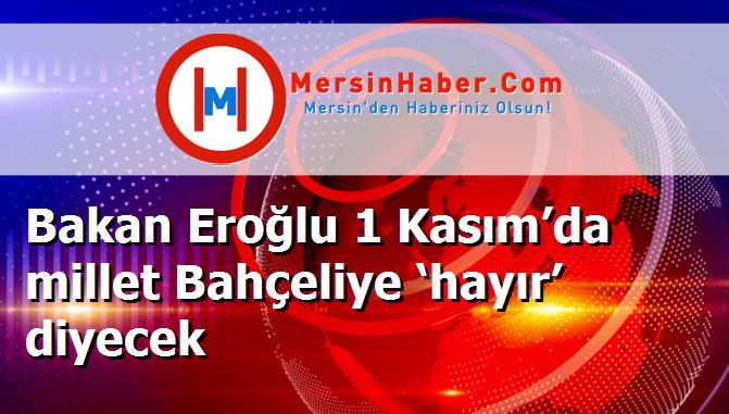 Eroğlu, 7 Haziran seçimleri sonrasında Bahçeli’nin hükümet kurma konusunda takındığı tutumu eleştirdi. MHP tabanından da oy isteyen Eroğlu, “MHP lideri Bahçeli biliyorsunuz. Aslında koalisyonla ilgili çalışmalarda parti tabanı AK Parti ile koalisyon kurulmasını istiyordu. Fakat karşı çıkan kişi Bahçeli oldu özellikle. Rahatsız bir tutumla buna mani oldu. Üst aklın direktifi doğrultusunda önce ‘seçime gideceğim’ dedi. Sonra ‘dışarıdan destek vereceğim’ dedi. En sonunda gidildiği zaman ‘ne koalisyon isterim, ne hükümete katılırım, ne de seçim hükümetine milletvekili veririm, ne de erken seçime giderim. Hepsine 'hayır' dedi. Başka bir izah yok. Dolayısıyla da millet de 1 Kasım’da Bahçeli’ye ‘Hayır, hayır, hayır’ diyecek inşallah.” dedi.