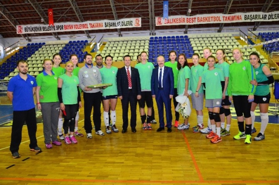 Balıkesir Altıeylül Belediye Başkanı Zekai Kafaoğlu, Büyükşehir Belediyespor Bayan Voleybol Takımını Play-Off maçları öncesinde ziyaret etti. Kafaoğlu, voleybolculara baklava ikram ederek, "Yanınızdayız, sizden 1. lig bekliyoruz" ifadelerini kullandı. Balıkesir Büyükşehir Belediyespor Bayan Voleybol Takımı, 9-10-11 Nisan tarihlerinde Bursa'da Play-Off maçlarına katılacak. Kafaoğlu, Belediye Başkan Yardımcısı Mesut Eray ile birlikte Kurtdereli Spor Salonu'na giderek voleybolcuların antrenmanına katıldı. Takım kaptanına çiçek veren Kafaoğlu, tüm sporcuları kutladı. Kafaoğlu, "Play-Off'a kaldınız, tebrik ediyoruz. Başarılı olup sizi 1. ligde görmek istiyoruz. Her zaman yanınızdayız. İlk maçınızda Bursa'da tribünde olacağım. Size inanıyor ve güveniyoruz" dedi.