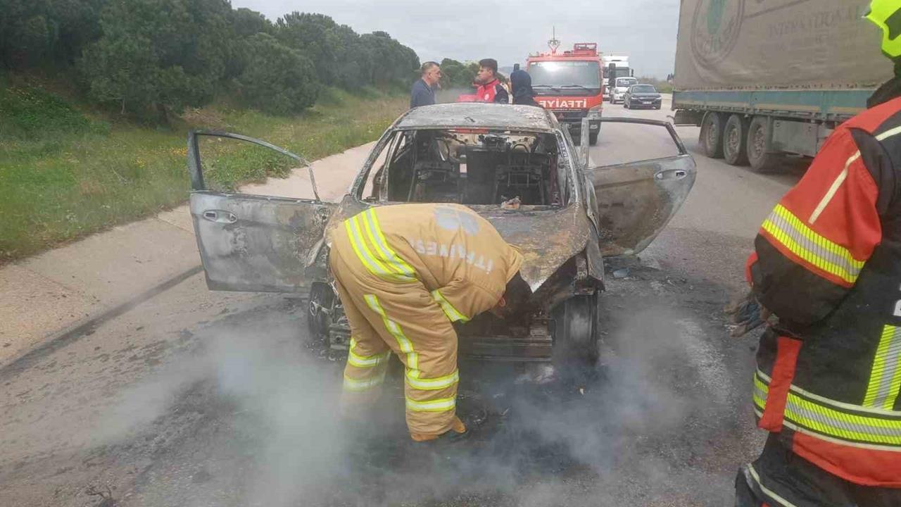 Biga-Bandırma Karayolu üzerindeki Marmara OSB yakınlarında, 16 AN 20** plakalı bir araçta henüz belirlenemeyen bir sebepten dolayı yangın başladı. Yangın, kısa sürede büyüyerek aracı sardı. Sürücünün durumu fark etmesi üzerine aracı yol kenarına çekmesiyle daha büyük bir kazanın önüne geçildi.