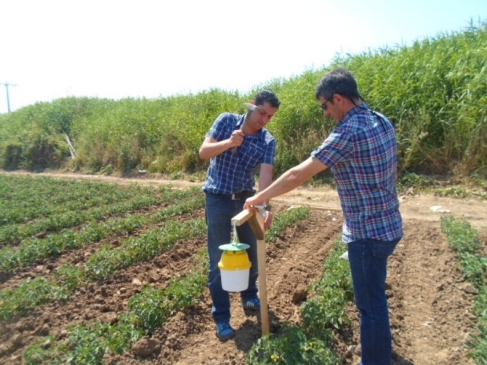 Balıkesir Burhaniye'de domates tarlalarında yeşil kurt ve güve tehlikesi nedeniyle tuzaklar asıldı ve kontroller yapıldı.