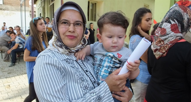 Balıkesir'in Burhaniye ilçesinde Halk Eğitimi Merkezi Müdürlüğü tarafından düzenlenen kursların sona ermesiyle birlikte kursiyerlere belgeleri verilmeye başlandı. Bu kapsamda, Şarköy'deki elişleri kursunu tamamlayan 3 çocuk annesi Sadiye Ayışık da, 8 aylık oğlu Hakan Ayışık ile birlikte belge aldı. Kursun öğretmenliğini üstlenen Nurcan Narin, Sadiye Ayışık'a belgelerini takdim etti. Sadiye Ayışık, kursa katılma arzusunu ifade ederek, "Çocuğumla birlikte kursa geldim. Yakınlarım çocuğuma baktı, ben de kursa devam ettim. Belge törenine oğlum Hakan ile geldim. Bize emek veren öğretmenimize teşekkür ediyorum." şeklinde konuştu.