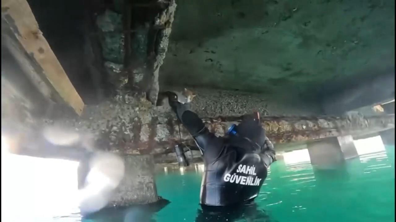 Balıkesir'in Edremit ilçesinde yaşanan olayda, Akçay Mahallesi sahilinde bulunan iskelenin altında bir kedinin sesi duyuldu. Durumu fark eden vatandaşlar, kediyi kurtarmak için kendi çabalarıyla harekete geçti ancak başarılı olamayınca yetkililere haber verdi. Edinilen bilgiye göre, ihbar üzerine bölgeye hızla intikal eden Sahil Güvenlik Komutanlığı’na bağlı balık adamlar, kediyi kurtarmak amacıyla denize girdi.