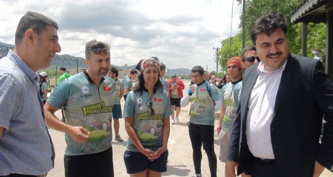 Balıkesir Edremit'teki bisiklet etkinliğine katılan yeni evli çift, balaylarını pedal çevirerek geçiriyor.