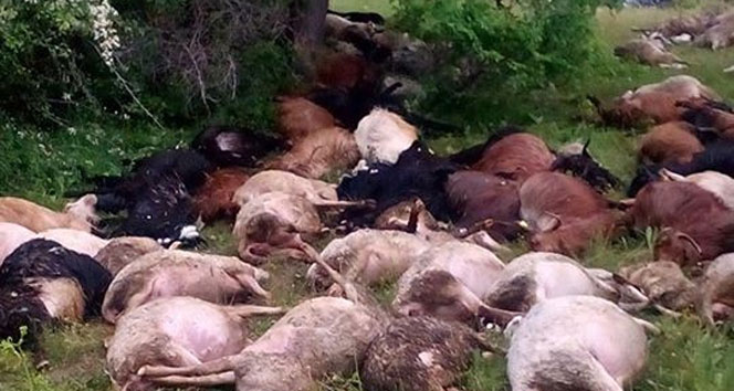 Dursunbey'de dün meydana gelen olayda, etkili olan sağanak yağış sırasında merada otlayan 250 küçükbaş hayvanın bulunduğu alana yıldırım düştü. Olay anında çoban İsa Gümüş, şans eseri yara almadan kurtulurken, durumu hemen jandarmaya bildirdi. Jandarma ve belediye ekipleri tarafından yapılan araştırmalarda, hayvanlardan 124'ünün telef olduğu belirlendi.
