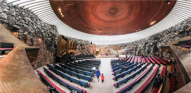 Temppeliaukio Kilisesi de kayaların içine yerleşen görüntüsü ile eşsiz bir görsel şölen hazırlıyor. Mükemmel akustiği ile konserlere ve kültürel etkinliklere de hizmet veren kilisede konser izleyebilirseniz şanslısınız demektir. Panoramik görüntüsü ile adeta bir masalın içinde hissettiren kilise, doğa ile mimarinin kucaklaşmasının en ilginç örneklerinden irini veriyor.