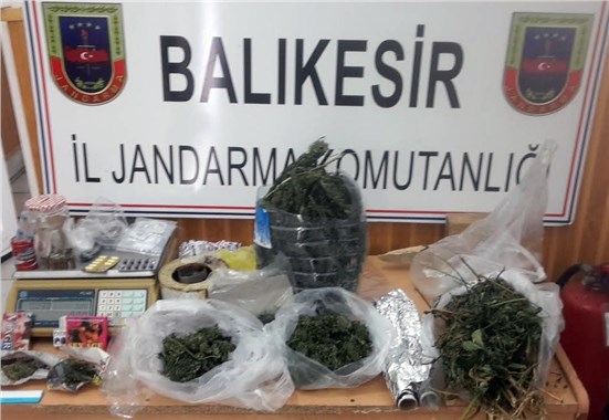 Bandırma İlçe Jandarma Komutanlığına bağlı ekipler, Edincik Mahallesi'nde ikamet eden C.G., M.G. ve S.K.’nin kendi bahçelerine ektikleri kenevir bitkisinden elde ettikleri esrar maddesini evlerinde ve bahçelerinde saklayarak sattıkları ihbarı üzerine şahısların evlerine operasyon yaptı. K-9 köpeklerinin de katıldığı operasyonda 2 kilo 150 gram kubar esrar ele geçirildi. Zanlılar C.G., M.G. ve S.K. gözaltına alındı.