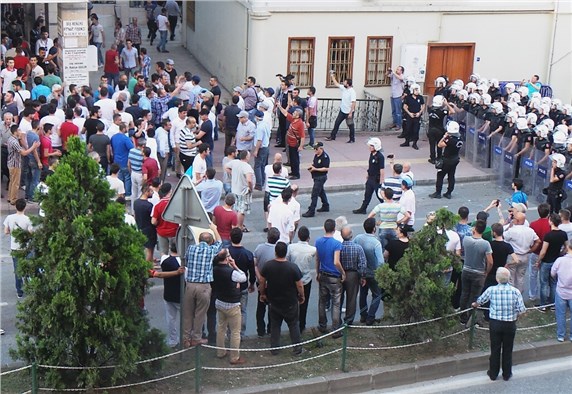 Polis çemberi dışında toplanan çok sayıda Samsunlu, “Şehitler gelirken siz neyin barışından söz ediyorsunuz?” diyerek basın açıklaması yapmak isteyen gruba tepki gösterdi. Bunun üzerine basın açıklaması yapmakla yetinen grup, önce öğretmen evine sonra da otobüsle alandan uzaklaştırıldı. Otobüse taşlarla saldırarak camlarını kıran iki kişi gözaltına alındı.