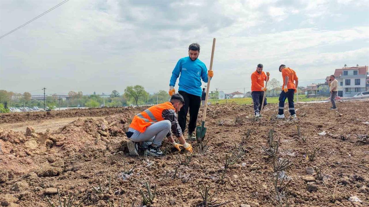 Başiskele'de Yaylacık Mahallesi'nde yer alan parkta 15 bin gül fidanı toprakla buluşuyor. Proje, kentin peyzaj düzenlemeleri kapsamında gerçekleştiriliyor.