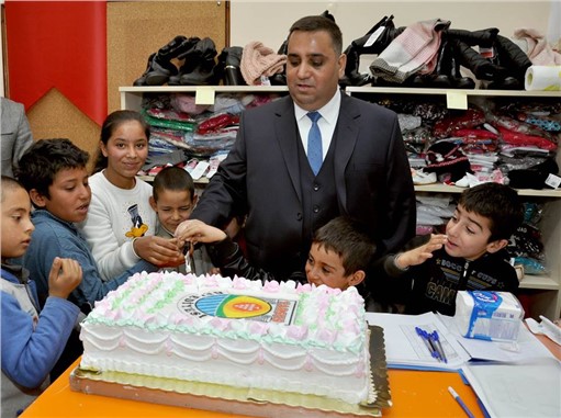 Belediye tarafından hazırlanan yaş pastayı öğrencilerle birlikte kesen Belediye Başkanı Şevket Can, öğrencilere kıyafet seçme konusunda da yardımcı oldu.