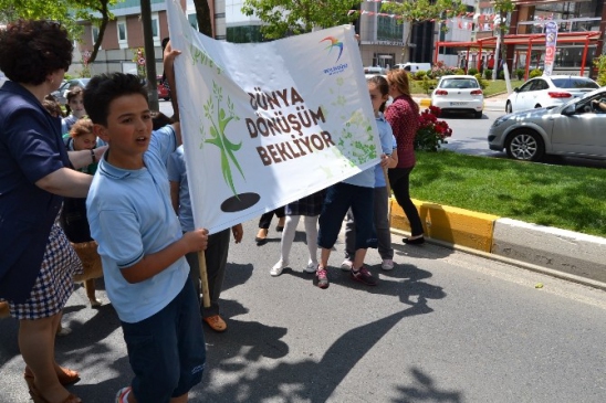 Beylikdüzü Belediyesi, Çevre Haftası etkinlikleri çerçevesinde çocukları bir araya getirerek doğa yürüyüşü düzenledi. Beylikdüzü Kültür Merkezi önünde buluşan çocuklar, çevre bilincini artırmak amacıyla ellerinde dövizlerle etkinlik alanına doğru yürüdü. Bu sırada bir sokak köpeğinin de onlara katılması dikkat çekti. Renkli görüntüler oluşturan çocuklar, atıklardan şişe yapma etkinliği gerçekleştirdi ve belediye tarafından dağıtılan organik elmaların tadını çıkardı. Ayrıca, Doğa İçin Çal grubu üyeleri tarafından verilen konserde hep birlikte şarkı söylediler.