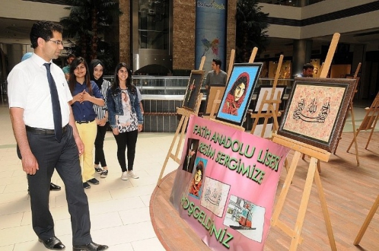 Batman Fatih Anadolu Lisesi'nde düzenlenen resim sergisi, 55 eserden oluşuyor. Batman Park AVM'de gerçekleştirilen sergide, yağlı boya, kara kalem, sulu boya, ebru üzerine hat çalışmaları, boncuk ve filografi çalışmaları yer aldı. Sergi, gün boyunca ziyaretçilerin ilgisine açık tutuldu. Milli Eğitim Müdürü Mehmet Çelik, sergiyi ziyaret ederek eserleri inceledi ve öğretmenler ile öğrencilerden bilgi aldı. Okul müdürü Cengiz Haşimoğlu, serginin hazırlanmasında emeği geçen öğretmen ve öğrencilerle birlikte halkın beğenisine sunulan eserleri tanıttı. Çelik, sosyal etkinliklerin öğrencilerin gelişiminde önemli bir rol oynadığını belirterek, bu tür çalışmaların özgüven geliştirmeye yardımcı olduğunu vurguladı. Öğrencilerin yıl boyunca görsel sanatlar dersinde hazırladığı eserlerin sergiye yansıdığını ifade eden Çelik, emeği geçen herkese teşekkür etti.