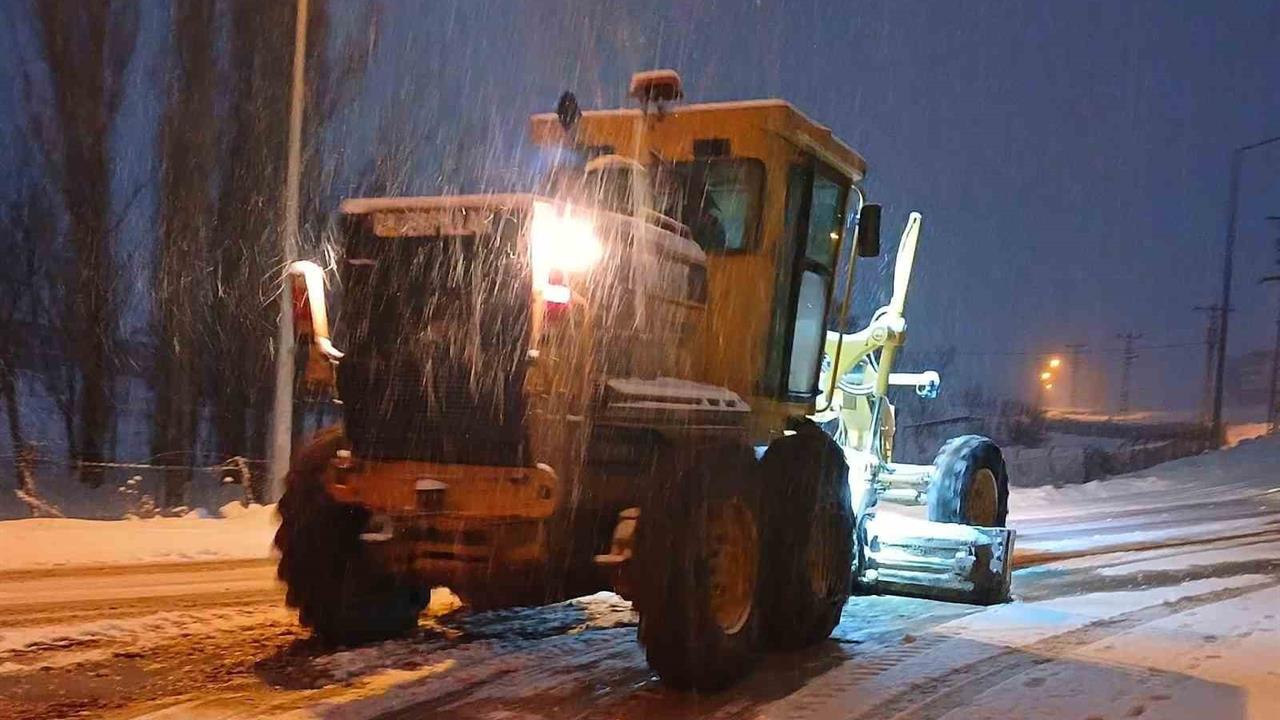 Bayburt'ta etkili olan kar yağışı nedeniyle, karla mücadele ekipleri kar küreme ve tuzlama çalışmalarını aralıksız sürdürüyor.