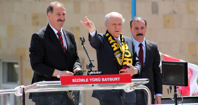 Milliyetçi Hareket Partisi (MHP) Genel Başkanı Devlet Bahçeli, Bayburt'ta düzenlenen mitingde halka hitap etti. Bahçeli, burada yaptığı konuşmada, "Bayburt’un bu heyecanına, coşkusuna tanıklık etmekten mutluluk duyuyorum. 9 gün sonra yapılacak seçimlerin ülkemiz için hayırlı olmasını diliyorum" dedi. Bahçeli, Bayburt'un sorunlarına da değinerek, işsizlik ve yoksulluk gibi konulara dikkat çekti. "AKP, Bayburt’un sorunlarına çözüm bulamamıştır" diyen Bahçeli, vatandaşların sıkıntılarına yönelik çözüm önerileri sundu.