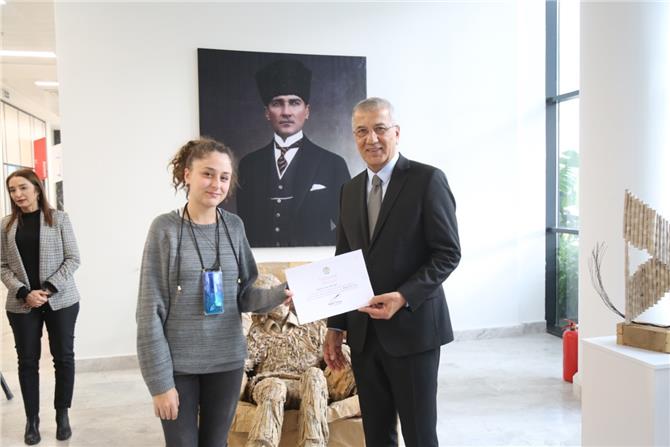 Sergi açılışında katkı sunan tüm öğrenci ve öğretmenlere teşekkür sertifikası verildi.