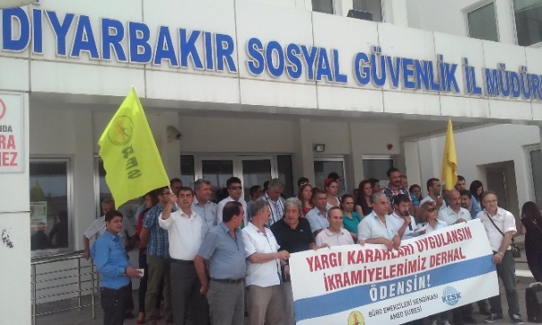Büro Emekçileri Sendikası (BES) üyeleri, 2012 yılından bu yana ödenmeyen maaş ikramiyeleri konusunda haklarını talep etmek amacıyla Sosyal Güvenlik Kurumu (SGK) Diyarbakır İl Müdürlüğü önünde basın açıklaması düzenledi. Açıklamayı SGK iş yeri temsilcisi Mahmut Ortaç okudu. Ortaç, 2012 yılından beri alamadıkları ikramiyelerin ödenmesi gerektiğini vurguladı. Ayrıca, genel seçimler öncesinde siyasi partilerin işçiye ve emekçiye sahip çıkma yönünde vaatlerde bulunduğunu belirtti.