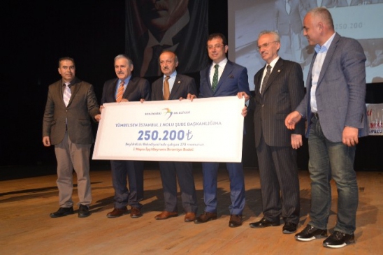 Beylikdüzü Belediyesi, imzalanan toplu sözleşme sonucunda 1 Mayıs için çalışanlarına bir maaş ikramiyesi dağıttı. İkramiye teslim töreninde Beylikdüzü Belediye Başkanı Ekrem İmamoğlu, çalışanlarla birlikte halay çekerek bayram coşkusunu paylaştı. Toplamda 278 memura verilen 250 bin 200 TL değerindeki ikramiye, Beylikdüzü Kültür Merkezi'nde gerçekleştirilen bir törenle temsili olarak dağıtıldı. Törende TÜM BEL-SEN Genel Başkanı Ömer Salih Erol, kamu çalışanlarının demokratik haklarının önemine vurgu yaptı. Erol, "Memurların en çok istediği şey demokratik haklarını kazanmasıdır," diyerek toplu sözleşmelerin önemine dikkat çekti.