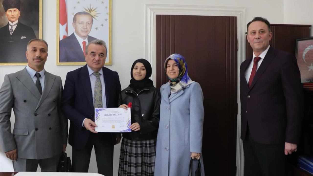 Kaymakam Öztürk, öğrenciyi tebrik ederek, final sürecinde gösterdiği başarılar için kendisine iyi dileklerde bulundu.