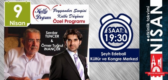 Bilecik Belediyesi, 2015 Kültür ve Sanat Yılı etkinlikleri çerçevesinde "Peygamber Sevgisi Kalbe Düşünce" adlı bir program organize ediyor. Bu etkinlik, Bilecik Belediyesi Şeyh Edebali Kültür ve Kongre Merkezi'nde gerçekleştirilecek. Programın sunuculuğunu ünlü şair ve yazar Serdar Tuncer üstlenecek. Tuncer, tasavvufçu Ömer Tuğrul İnançer ile birlikte Peygamber Efendimizin hayatı ve kutlu doğumunu katılımcılara aktaracak. Katılımcılar, düzenlenecek olan bu program sayesinde Peygamber Efendimizi daha iyi anlama fırsatı bulacaklar. 9 Nisan Perşembe günü saat 19:30'da başlayacak olan etkinliğe tüm halk davetlidir.