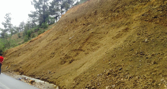 Bilecik Merkez'de gerçekleşen toprak kayması, Bilecik-Bozüyük karayolu üzerinde trafiğin tek şeritli ilerlemesine yol açtı.