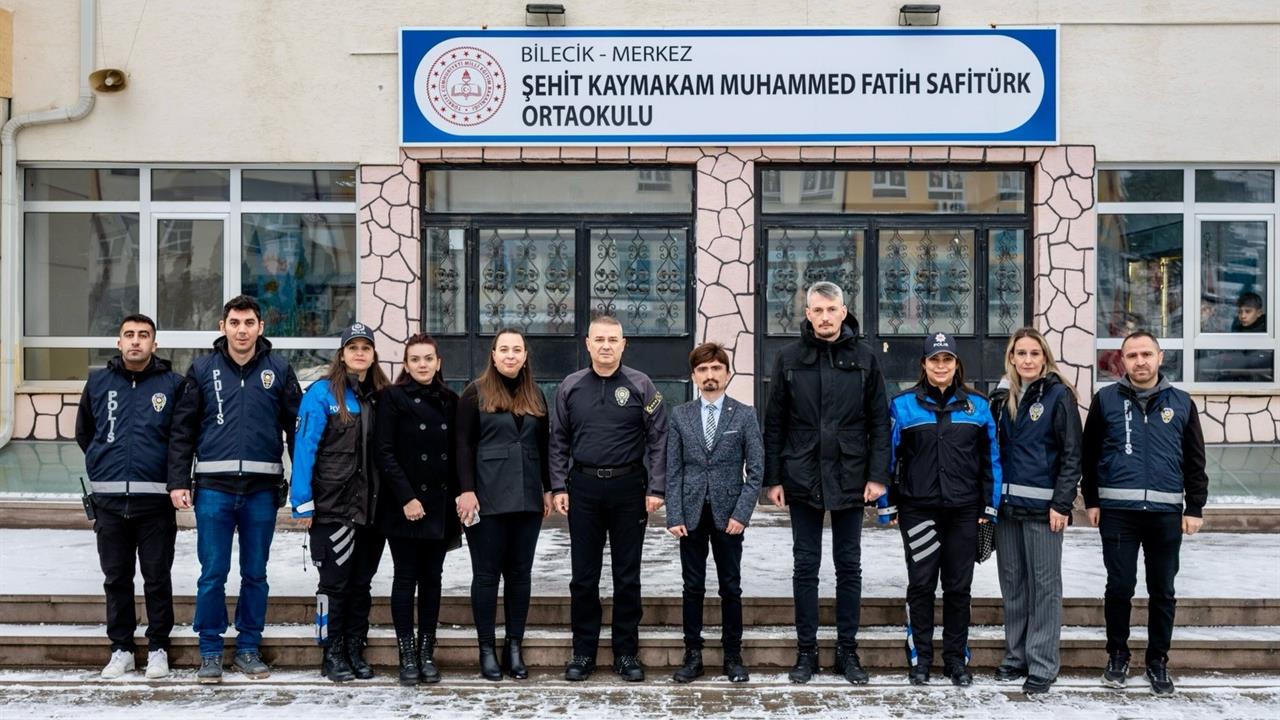 Bilecik İl Emniyet Müdürü Gökalp Şener, Bilecik Şehit Kaymakam Muhammed Fatih Safitürk Ortaokulu'nda öğretmenlerle bir araya gelerek okul güvenliği konusunda önemli bir toplantı gerçekleştirdi. Toplantıya, Çocuk ve Toplum Destekli Şube Müdürlüğü personeli de katıldı. Bu buluşmada, eğitimde iş birliği ve öğrencilerin güvenli bir ortamda eğitim alabilmesi için alınabilecek tedbirler tartışıldı.