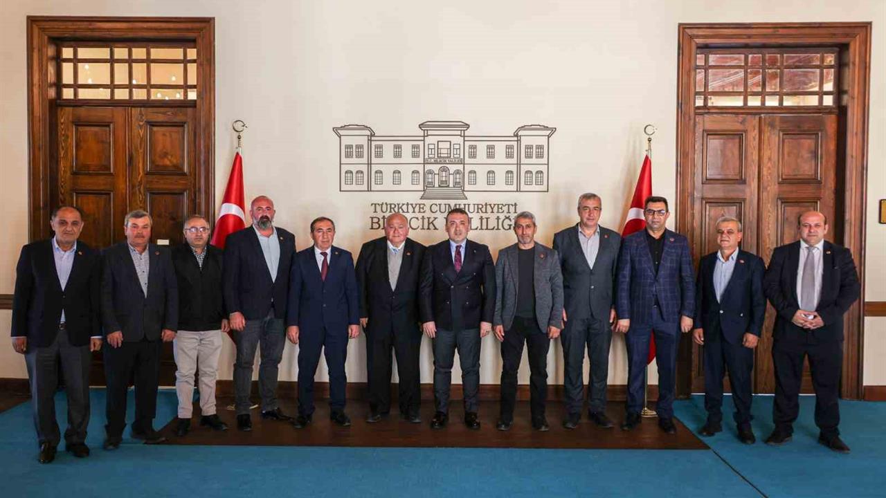 Bilecik Valisi Faik Oktay Sözer, Bilecik Muhtarlar Derneği Başkanı İlhami Çınar ve yönetim kurulu üyeleriyle yaptığı görüşmede, muhtarların talepleri ve görüşleri üzerinde duruldu. Ayrıca, yerel yönetim hizmetlerinde iş birliği ve koordinasyonun artırılması konuları ele alındı. Vali Sözer, mahallelerde yürütülen çalışmalara ve vatandaşların ihtiyaçlarına daha hızlı çözümler üretilmesine yönelik değerlendirmelerde bulundu. Toplantıda, muhtarların devlet ile vatandaş arasında önemli bir köprü görevi üstlendiği vurgulandı. Bu bağlamda, kamu hizmetlerinin etkinliğini artırmak amacıyla iş birliğinin devam edeceği belirtildi. Ayrıca, geçtiğimiz günlerde gerçekleştirilen Olağan Genel Kurul Kongresi’nde 6’ncı kez başkanlığa seçilen İlhami Çınar ve yönetim kurulu üyeleri tebrik edilerek başarılar dilendi.