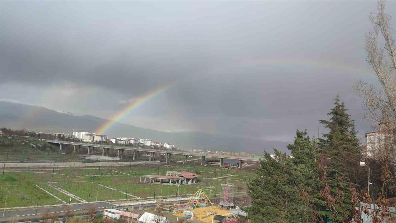 Bingöl Merkez'de meydana gelen gökkuşağı, yağmurun ardından güneşin çıkmasıyla ortaya çıktı.