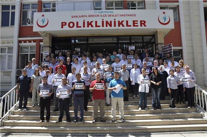 Birecik'te düzenlenen basın açıklamasında, Sağlık-Sen İlçe Temsilcisi Halil Arslan, son günlerde yaşanan şiddet olaylarına dikkat çekerek, sağlık çalışanlarının güvenliğinin sağlanması gerektiğini vurguladı.