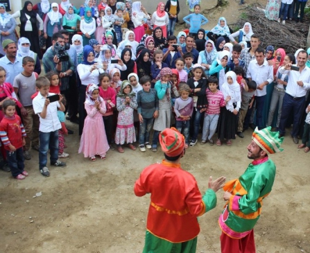 Bitlis Kültür ve Sanat Derneği tiyatro ekibi, çocuklar için hazırladıkları gösteri kapsamında Çitliyol köyüne giderken, köyde düzenlenen düğünle karşılaştı. Düğün nedeniyle köylülerden yoğun ilgi gören ekip, köy meydanında Hacivat ile Karagöz oyununu sahneledi. Bu etkinlik, Bitlis Valiliği'nin destekleriyle gerçekleştirilen “Köy Köy Okul Okul Tiyatro-2” Projesi çerçevesinde yapıldı. Proje Başkan Yardımcısı Haydar Yılmaz, köydeki çocuklar için düzenlenen gösterinin ardından halkın yoğun isteği üzerine düğün alanında da performans sergilediklerini belirtti. Yılmaz, köyde ilk kez oyun sergilediklerini ifade ederek, halkın ilgisinin kendilerine büyük bir moral kaynağı olduğunu vurguladı. Ayrıca, gösterinin ardından oyuncular düğüne katılarak renkli anlar yaşattı. Yılmaz, bu anlamlı projeyi destekleyen Bitlis Valisi Orhan Öztürk'e teşekkür etti.